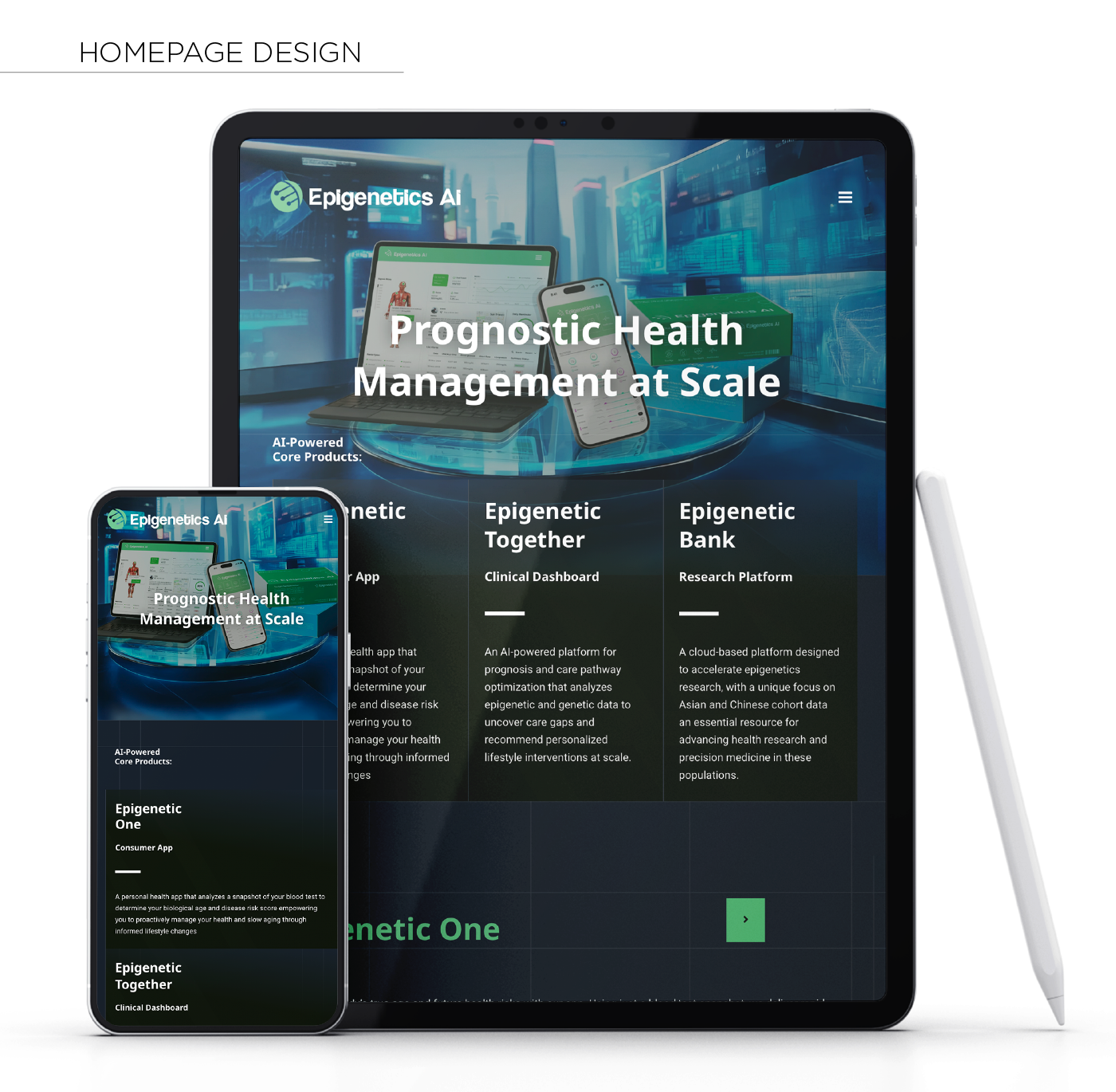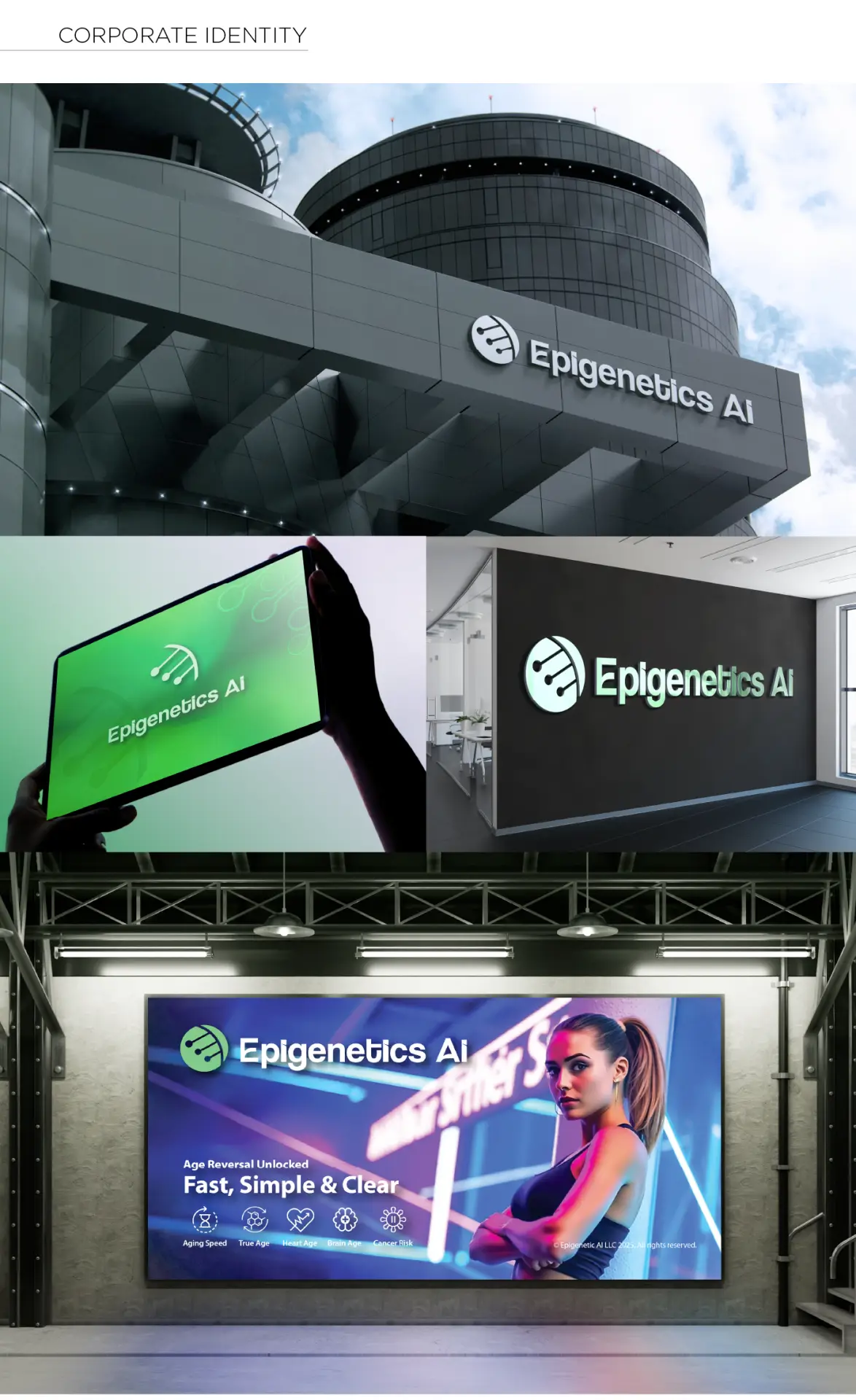 Client: Epigenetics AI | Brand Design: Ken Yim | Motion Graphic: Ken Yim | UI: Ken Yim |UX Research: Epigenetics AI Development Team |Software: After Effect, Photoshop, Illustrator, Adobe Express, LLM Generative AI, Figma/Sketch